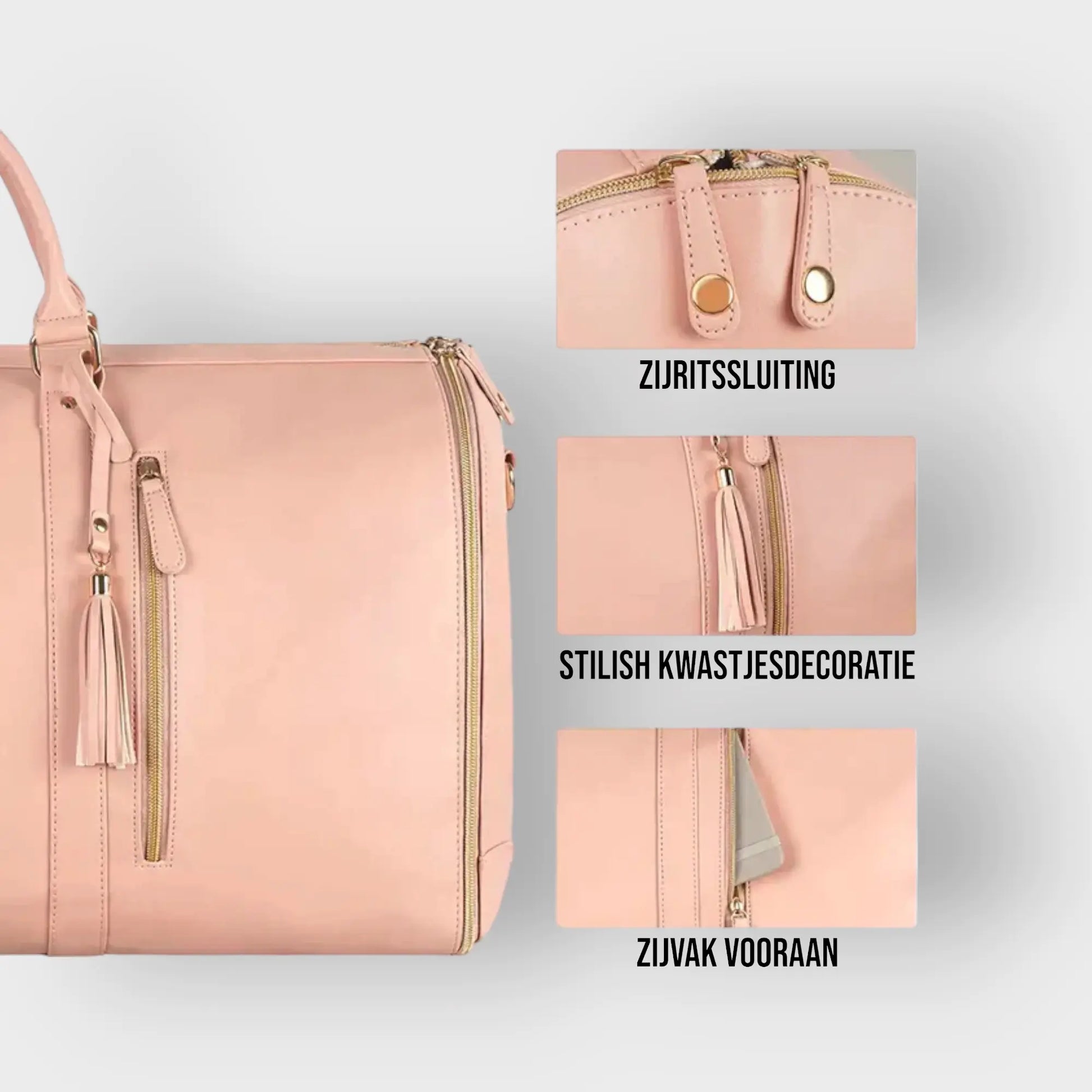 Deze luxe reistas houdt je kleding kreukvrij met slimme bevestigingen. Perfect voor vakanties, bruiloften of zakenreizen. Je kunt je jurkjes en blouses netjes op hangers bewaren.