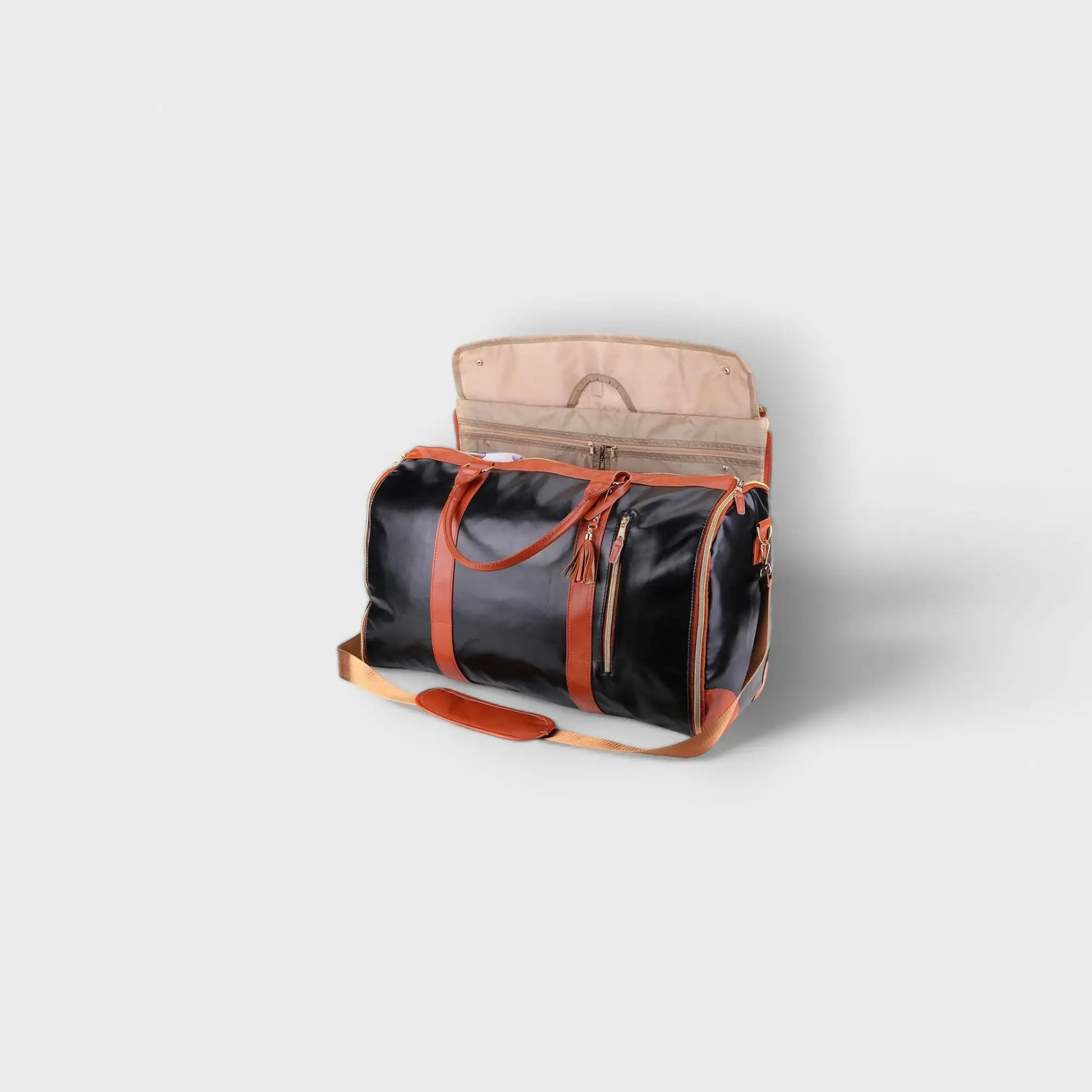Geen ruimbagage of gedoe met grote koffers? Bestel onze opvouwbare luxe reistas met kledingvak. Past binnen handbagage-afmetingen en biedt maximaal gemak.